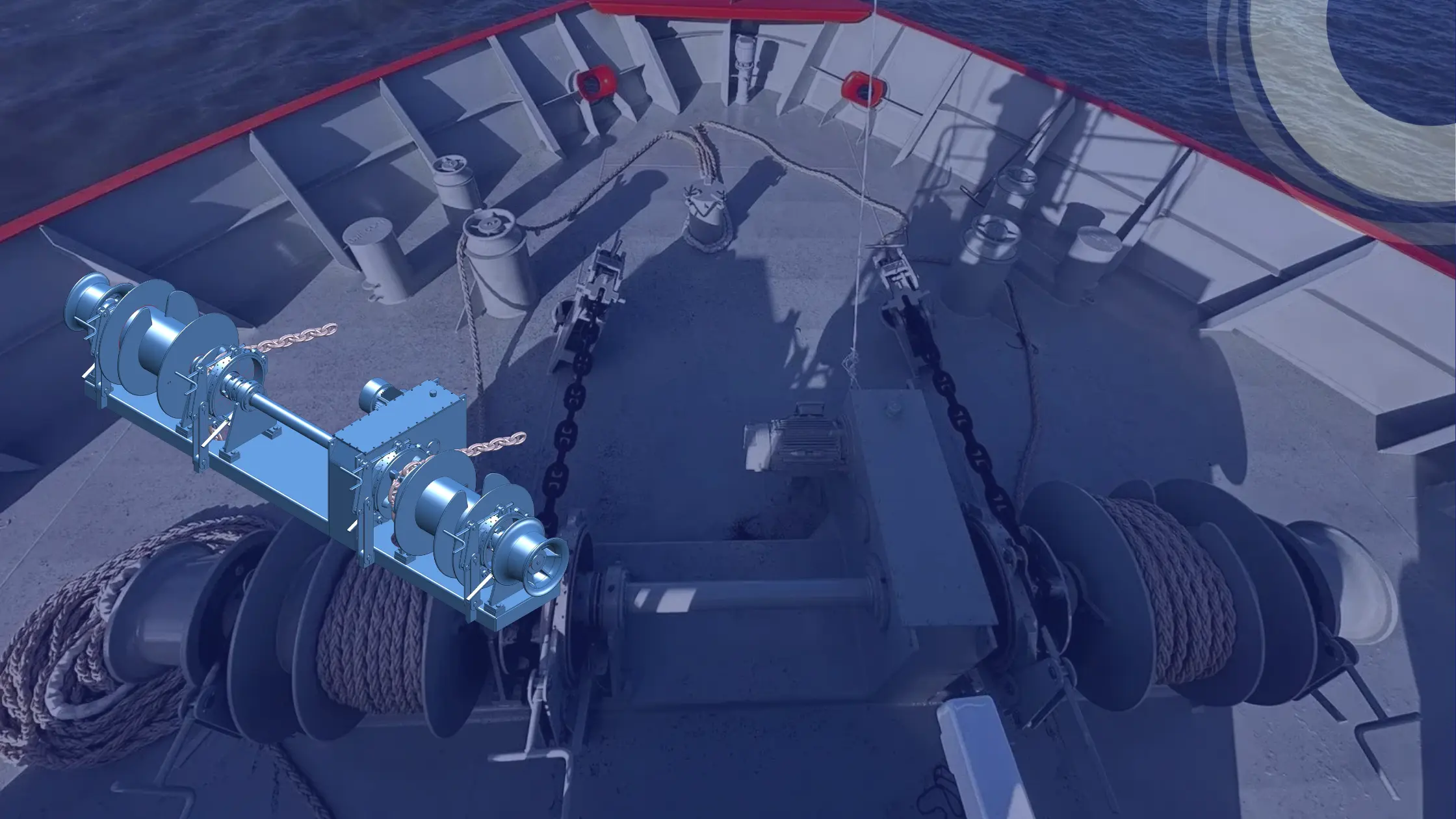 The anchor winches have a nominal pulling force of 5,600 kg.
