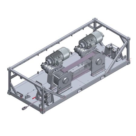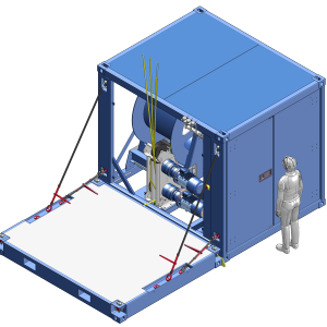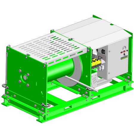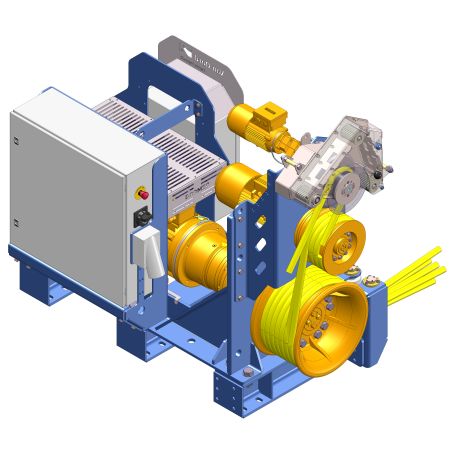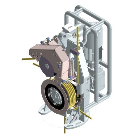 The pull-in system is used to pull power and data cables from the vessel into the wind turbine. It’s a complex tool specifically developed by DROMEC Winches for this purpose.
