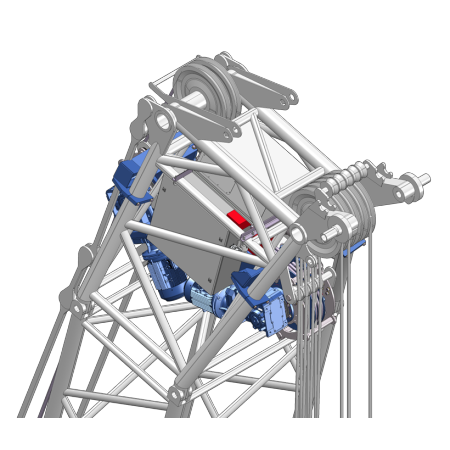 The unique and innovative Tension Master TM-1800 system relieves the crane and hoist wire when connecting heavy loads at great heights, such as during the disassembly of wind turbines. The winch system ensures continuous tension on the hoist wire, even when empty hook. The hoist wire is always rewound under tension onto the drum using the winch system. BKV successfully uses the Tension Master at various project locations.