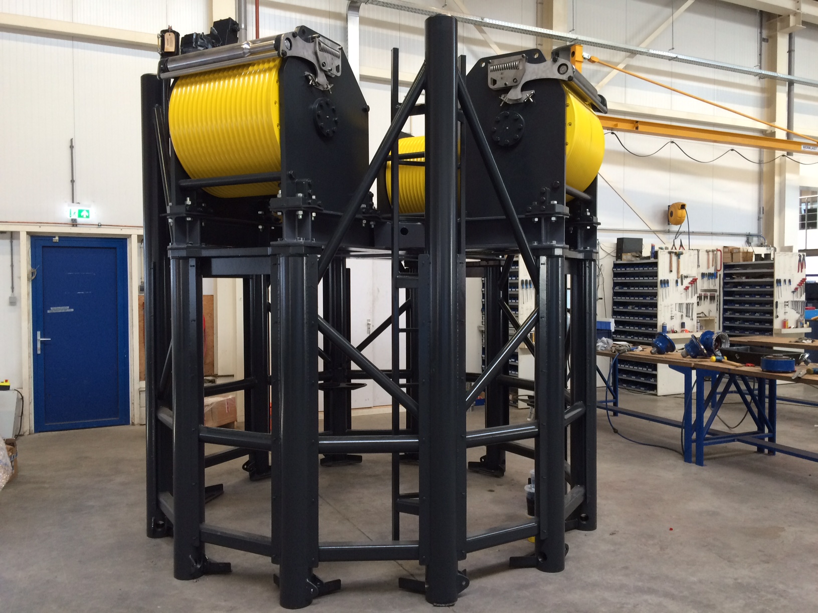 The top section houses 4 Dromec hydraulic HPH-20000 winches, controls and the hydraulic power packs to raise and lower the restaurant in a safe and comfortable way .